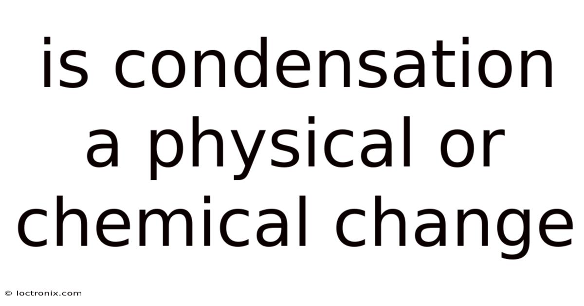 A physical change involves a change in the state or appearance of a substance without a change in its chemical identity. In the case of condensation, water molecules remain H₂O before and after the transition; only the spacing and movement of the molecules differ. The lack of new chemical bonds or products confirms that condensation does not constitute a chemical reaction It's one of those things that adds up..