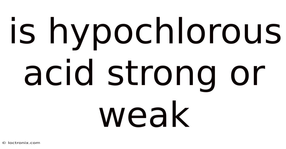 Hypochlorous acid (HOCl) stands as a fascinating example of how chemical properties dictate practical applications, particularly in disinfection and water treatment. Understanding whether it qualifies as a strong or weak acid is fundamental to grasping its behavior and effectiveness. This article gets into the nature of hypochlorous acid, exploring its dissociation characteristics, comparing it to other acids, and clarifying its practical implications Small thing, real impact..