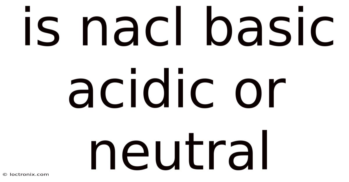Sodium chloride, commonly known as table salt, is one of the most familiar substances in our daily lives. We use it to enhance the flavor of our food, preserve meats, and even in various industrial processes. But have you ever wondered about its chemical nature? Consider this: specifically, is NaCl basic, acidic, or neutral? Understanding the pH characteristics of sodium chloride is fundamental to grasping its behavior in different chemical environments and its effects on various systems. This article will explore the scientific principles behind NaCl's pH properties, explain why it falls into the neutral category, and provide practical insights into its chemical behavior That's the whole idea..