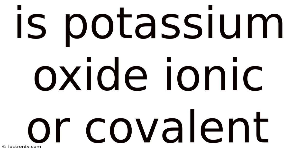 Understanding the nature of chemical bonds is essential for grasping how elements interact and form compounds. When it comes to potassium oxide, a compound that often raises curiosity, many wonder whether it is classified as an ionic or covalent substance. Here's the thing — the answer lies in examining the properties of the elements involved and the behavior they exhibit when combined. Here's the thing — this article will dig into the details of potassium oxide, exploring its structure, bonding characteristics, and the reasons behind its classification. By the end, you’ll have a clear understanding of what makes potassium oxide a fascinating example of both ionic and covalent interactions.