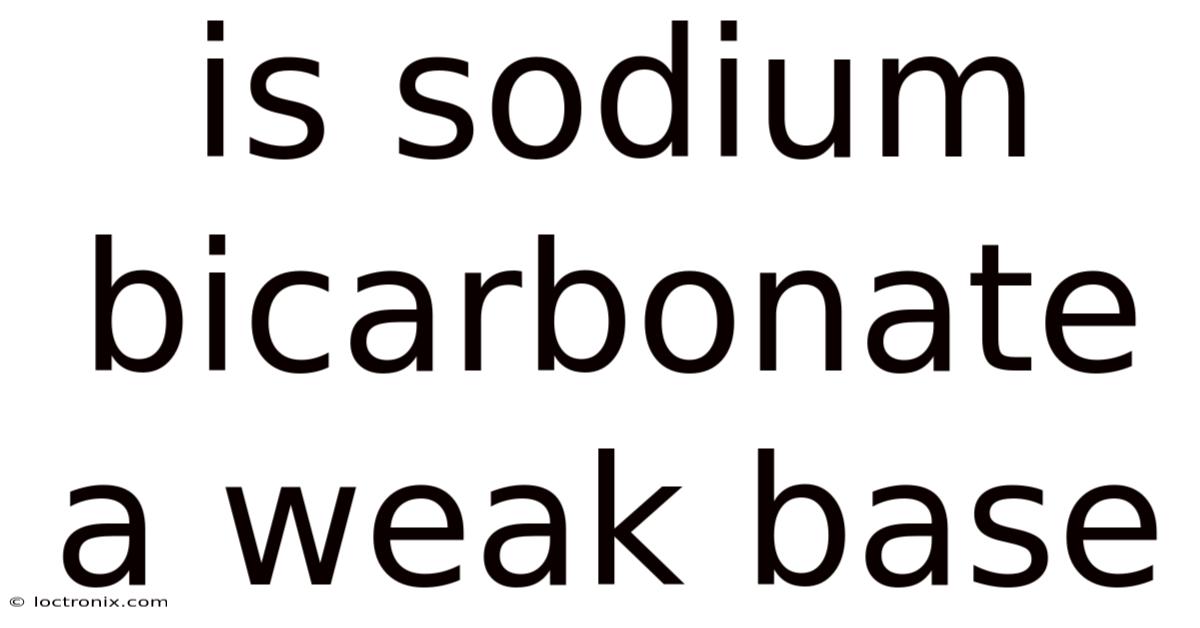 - Is sodium bicarbonate a weak base or a strong base? It is a weak base. Its Kb value (pKb ~10.3) is much higher