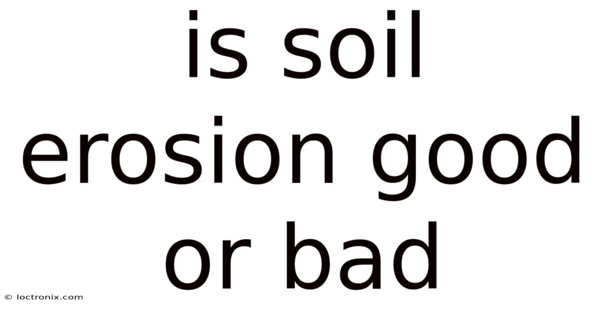 Soil erosion is neither entirely good nor bad. It is a natural process that has both beneficial and harmful effects. While it plays a crucial role in shaping the Earth's surface and creating new ecosystems, human activities have exacerbated its negative impacts. By understanding the causes and effects of soil erosion, we can take steps to manage it effectively and ensure that its benefits are maximized while its drawbacks are minimized.