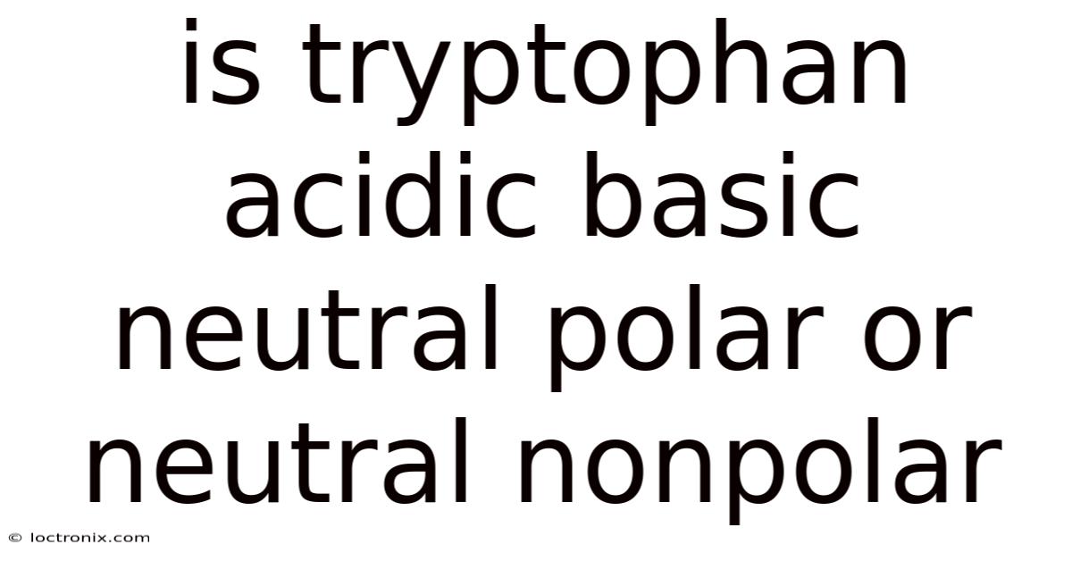 Is Tryptophan Acidic Basic Neutral Polar Or Neutral Nonpolar