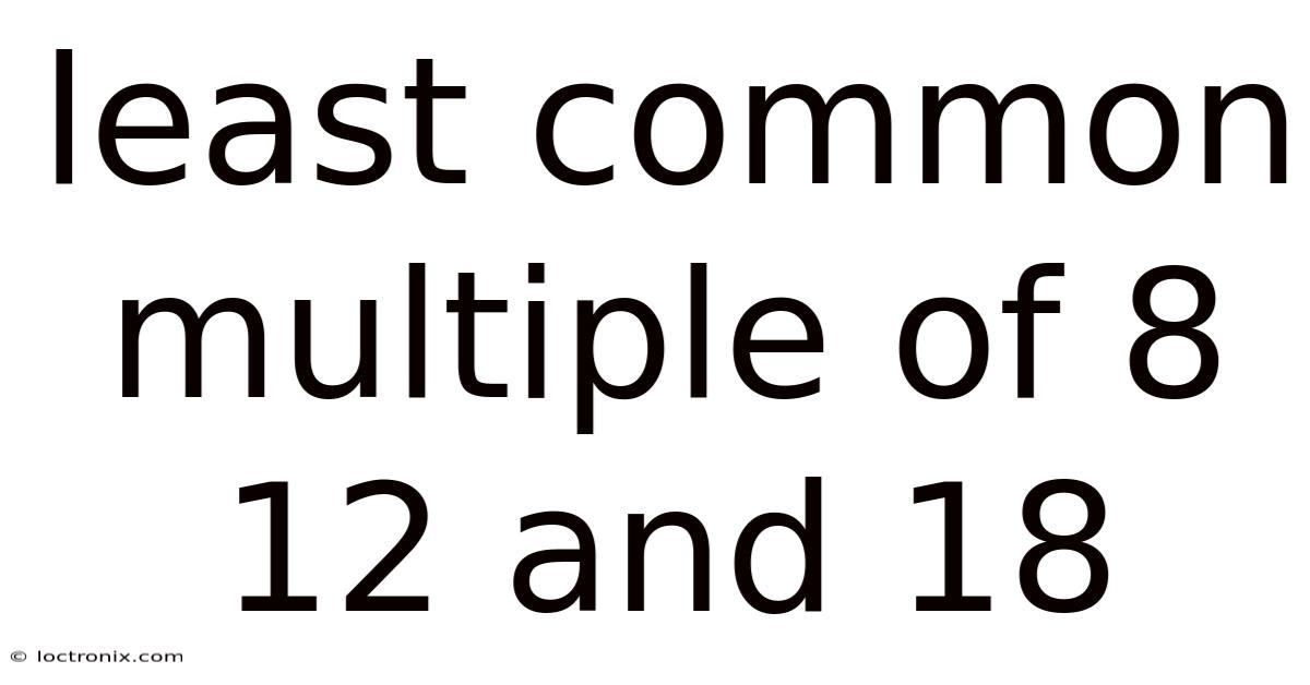Finding the least common multiple (LCM) of a set of numbers is a fundamental skill in mathematics that appears in everything from simplifying fractions to solving real‑world scheduling problems. This article explains, step by step, how to determine the LCM of 8, 12, and 18, explores the underlying concepts, and provides practical tips you can apply to any group of integers. By the end, you’ll not only know the exact LCM of these three numbers but also understand why the method works and how to use it confidently in exams, homework, or everyday calculations Not complicated — just consistent. Nothing fancy..