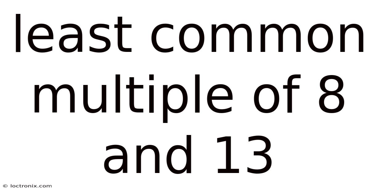 When you’re learning about multiples, divisibility, or solving algebraic equations, the concept of the least common multiple (LCM) often appears. Knowing how to find the LCM of two numbers—especially when they’re not obvious—can save time and reduce errors in many math problems. In this article we’ll focus on the LCM of 8 and 13, explaining why it’s 104, how to calculate it using different methods, and why that number matters in real‑world applications That's the part that actually makes a difference. Simple as that..