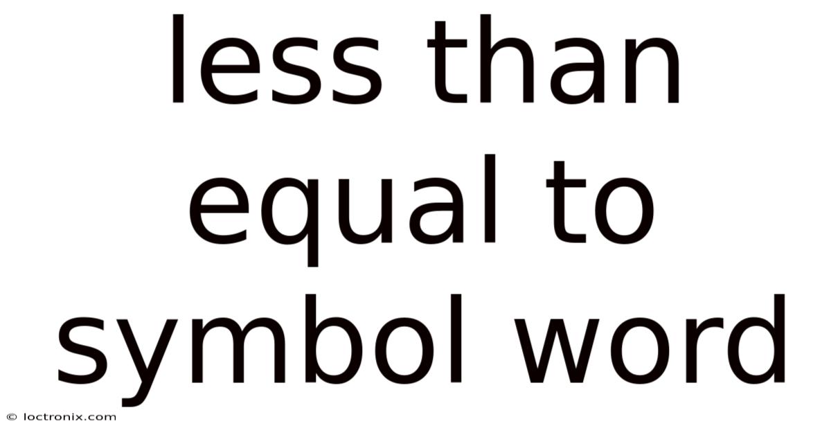 The less than equal to symbol word — commonly represented as “≤” — is a fundamental mathematical operator that denotes “less than or equal to.” This concise character conveys that one quantity is either smaller than another or exactly equal to it, making it indispensable in arithmetic, algebra, calculus, and computer programming. Understanding its meaning, usage, and technical implementation empowers students, educators, and developers to communicate precise relationships between values with clarity and efficiency.