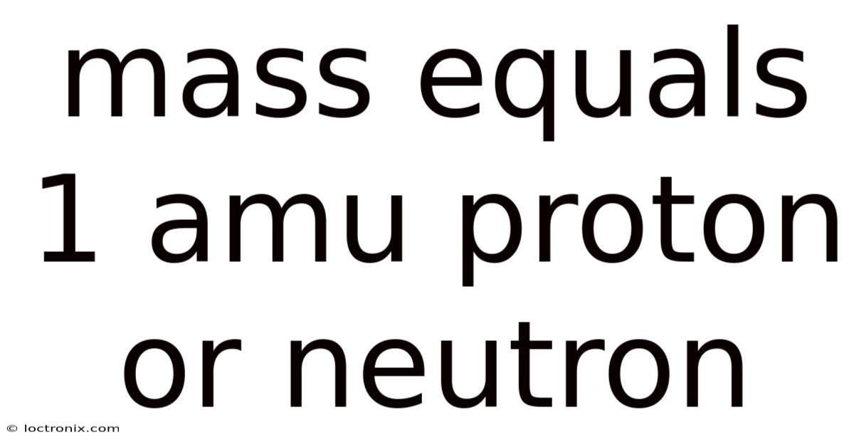 The statement that mass equals 1 amu proton or neutron is a cornerstone of nuclear chemistry and physics, providing a simple yet powerful way to compare the masses of subatomic particles. Practically speaking, in everyday scientific discussion, chemists and physicists use the atomic mass unit (amu) as a convenient reference for expressing the tiny masses of protons, neutrons, and electrons. This article explains why a proton and a neutron each have a mass that is essentially one atomic mass unit, explores the historical background of the amu, and clarifies common misconceptions that often arise when students first encounter this concept But it adds up..