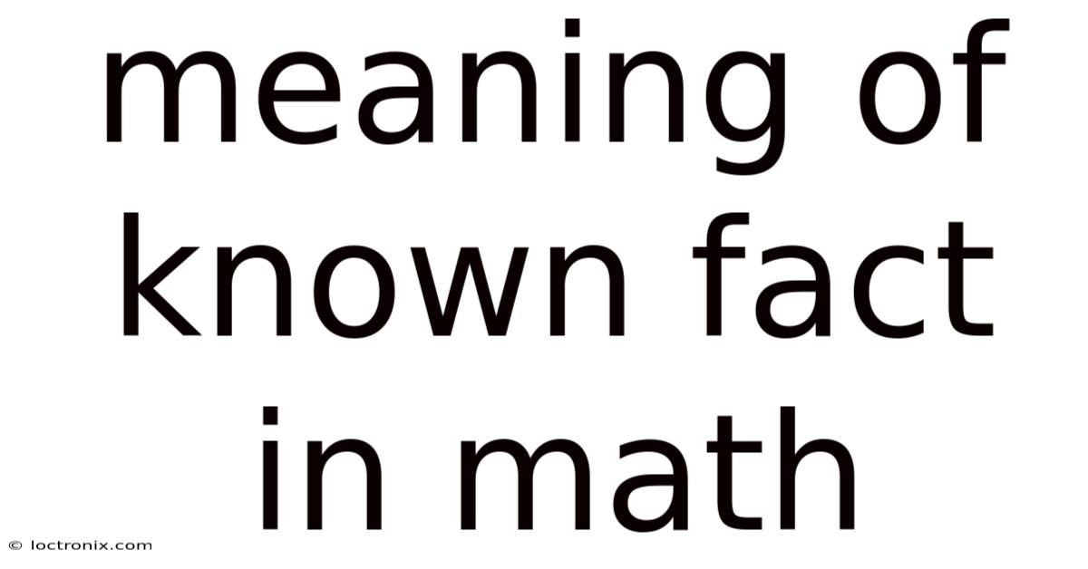 In mathematics, a known fact refers to a mathematical statement or principle that has been previously established, proven, and widely accepted within the mathematical community. Known facts represent the established truths of mathematics, having undergone rigorous verification through logical deduction, empirical evidence, or formal proof. Now, these facts serve as foundational building blocks upon which more complex mathematical concepts are constructed. They are the settled knowledge that mathematicians and students alike can rely upon when exploring new territories in mathematical thinking or solving problems Surprisingly effective..