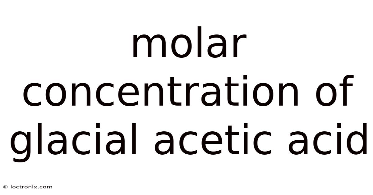 The molar concentration of glacial acetic acid is a cornerstone value in chemistry, anchoring everything from classroom experiments to large-scale industrial synthesis. Now, by understanding how to derive it, why it matters, and how to apply it safely, you gain a practical tool that enhances accuracy, efficiency, and confidence in your work. Here's the thing — whether you are preparing buffer solutions, conducting organic reactions, or simply expanding your scientific literacy, mastering this concept transforms uncertainty into precision. Remember that chemistry thrives on exactness, and a solid grasp of concentration principles ensures that every measurement you take contributes to reliable, reproducible results. Keep these calculations close, respect the reagent’s potency, and let precision guide your next experiment.
