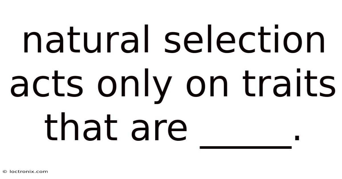 Natural selection, a cornerstone of evolutionary biology, is the process by which organisms better adapted to their environment tend to survive and pass on their traits to future generations. Even so, a critical nuance often overlooked is that natural selection acts only on traits that are heritable. Here's the thing — this means that for a trait to influence an organism’s survival or reproductive success, it must be encoded in the organism’s DNA and capable of being passed down to offspring. Traits acquired during an organism’s lifetime—such as calluses from manual labor or learned behaviors like riding a bicycle—do not qualify unless they have a genetic basis. This principle underscores the distinction between Lamarckian inheritance (discredited) and Darwinian evolution, which relies on genetic variation That's the part that actually makes a difference..