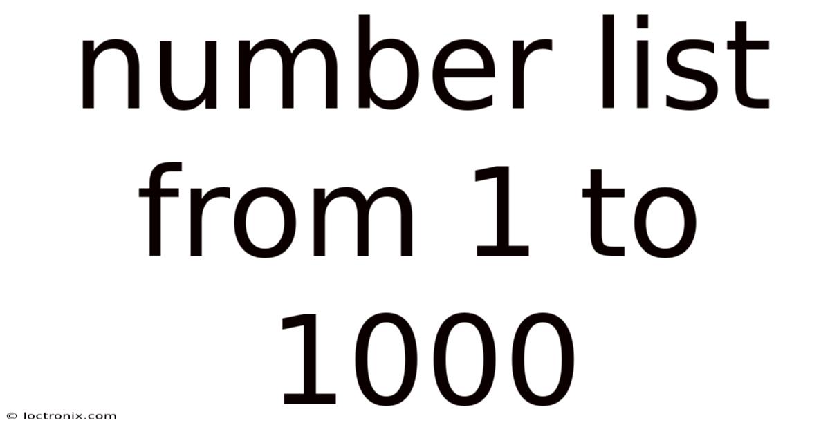 When we talk about the number list from 1 to 1000, we are referring to a sequence that starts at one and ends at one thousand. This sequence is not just a simple count but a powerful tool that underpins many aspects of our lives. From basic arithmetic to advanced mathematical theories, this list serves as a foundation for understanding patterns, calculations, and even data interpretation. The importance of this list lies in its ability to help us deal with through numbers with confidence and precision Nothing fancy..