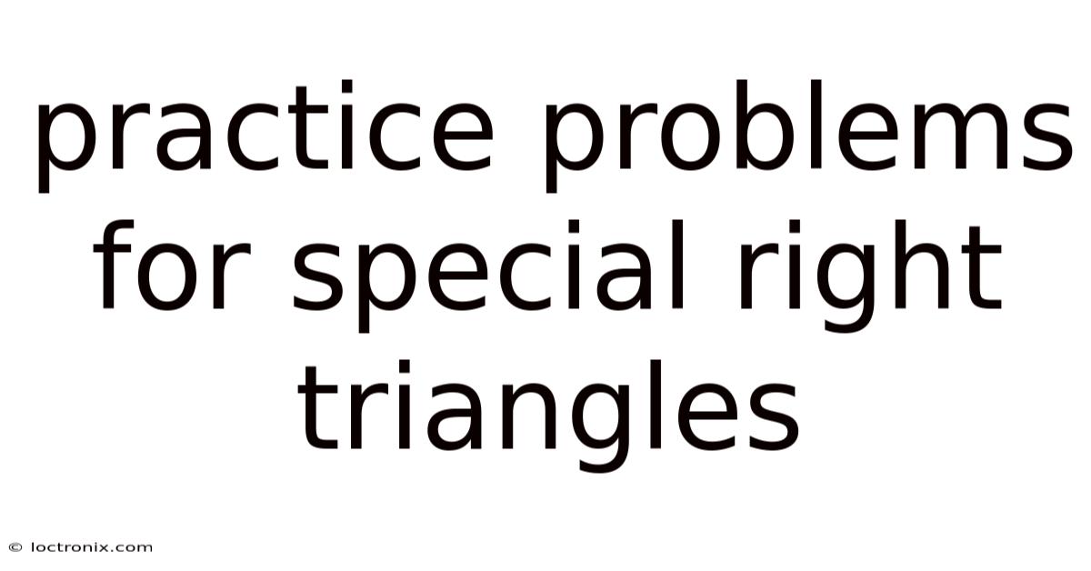 Special right triangles—those with angles of 30°, 60°, and 90° or 45°, 45°, and 90°—are foundational tools in geometry, trigonometry, and real‑world problem solving. Mastering them means you can instantly determine missing side lengths, simplify complex diagrams, and solve word problems with confidence. Below is a curated set of practice problems, complete with step‑by‑step solutions, that will sharpen your skills and reinforce the underlying principles of these classic triangles And it works..