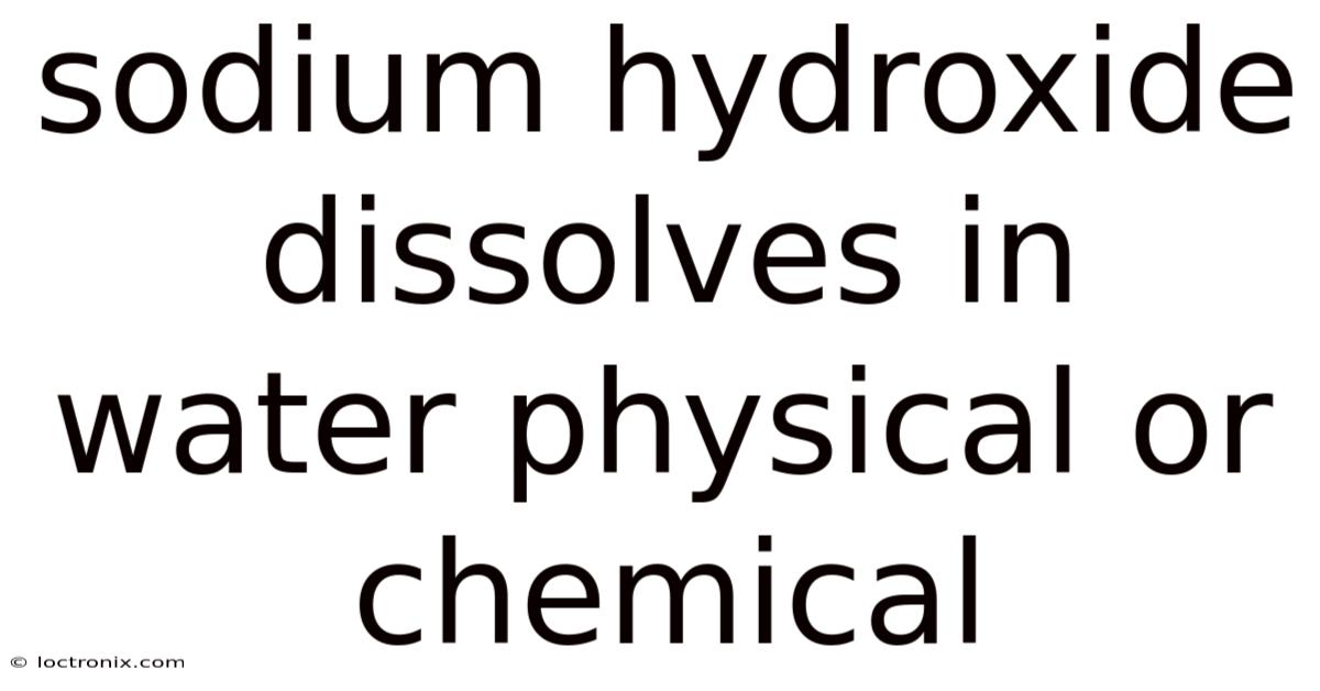 Q: Is dissolving sodium hydroxide in water a physical or chemical change? A: It is both. The initial breaking apart of the solid is a physical change, while the subsequent interactions with water molecules are chemical changes.