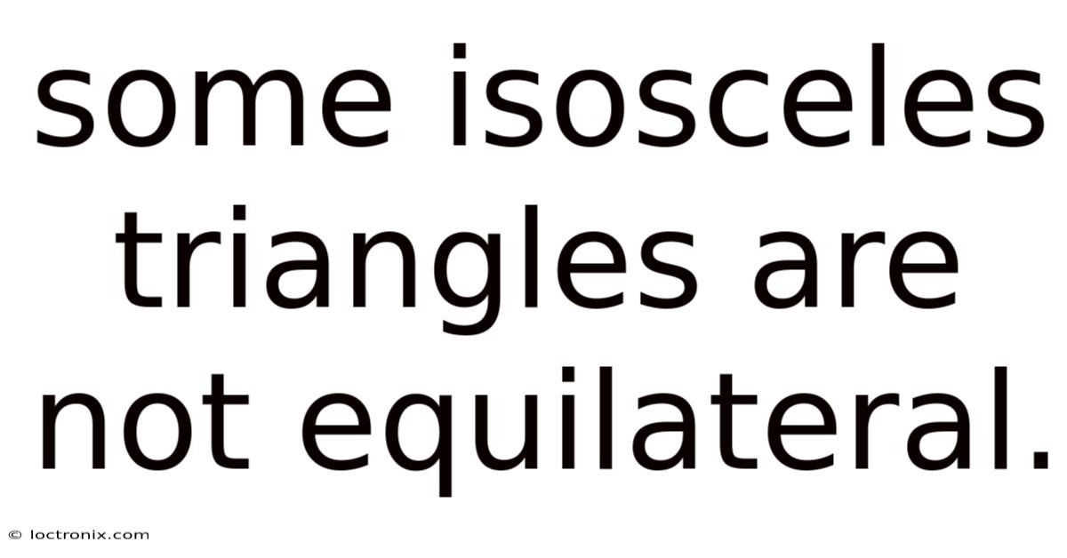 Some isosceles triangles are not equilateral. While the term "isosceles" immediately evokes images of perfectly symmetrical shapes with two equal sides, this classification often leads many to overlook the nuanced distinctions between various types of triangles. Equilateral triangles, a cornerstone of geometric perfection, possess three equal sides and three equal angles, while isosceles triangles feature at least two sides of equal length. Yet, not all isosceles configurations result in the rigid uniformity of equilateral forms. This distinction is not merely theoretical; it shapes practical applications, aesthetic preferences, and mathematical properties across disciplines. Understanding why some isosceles triangles defy equilateral status requires a deeper exploration of symmetry, measurement, and context. Such triangles challenge assumptions, offering unique challenges and opportunities for creative problem-solving. Here's the thing — their existence underscores the diversity inherent in geometry, reminding us that perfection often manifests in unexpected forms. This article looks at the detailed world of isosceles triangles, examining their defining traits, the scenarios where they emerge, and the implications of their deviation from the ideal equilateral configuration. Through this lens, we uncover the subtle beauty and complexity that defines these shapes, bridging the gap between simplicity and sophistication.