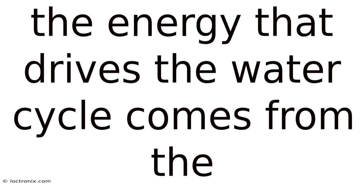 The energy that drives the water cycle comes from the sun. Understanding this solar-driven engine reveals the profound connection between celestial energy and terrestrial processes, highlighting the delicate balance that maintains our habitable environment. This fundamental force powers the continuous movement of water across, above, and below the Earth's surface, sustaining life and shaping our planet's climate. Without solar energy, the nuanced dance of evaporation, condensation, precipitation, and collection would cease, transforming our world into a static, barren landscape. This article explores the mechanisms through which solar radiation fuels the water cycle, its critical role in Earth's systems, and the scientific principles governing this essential planetary process.