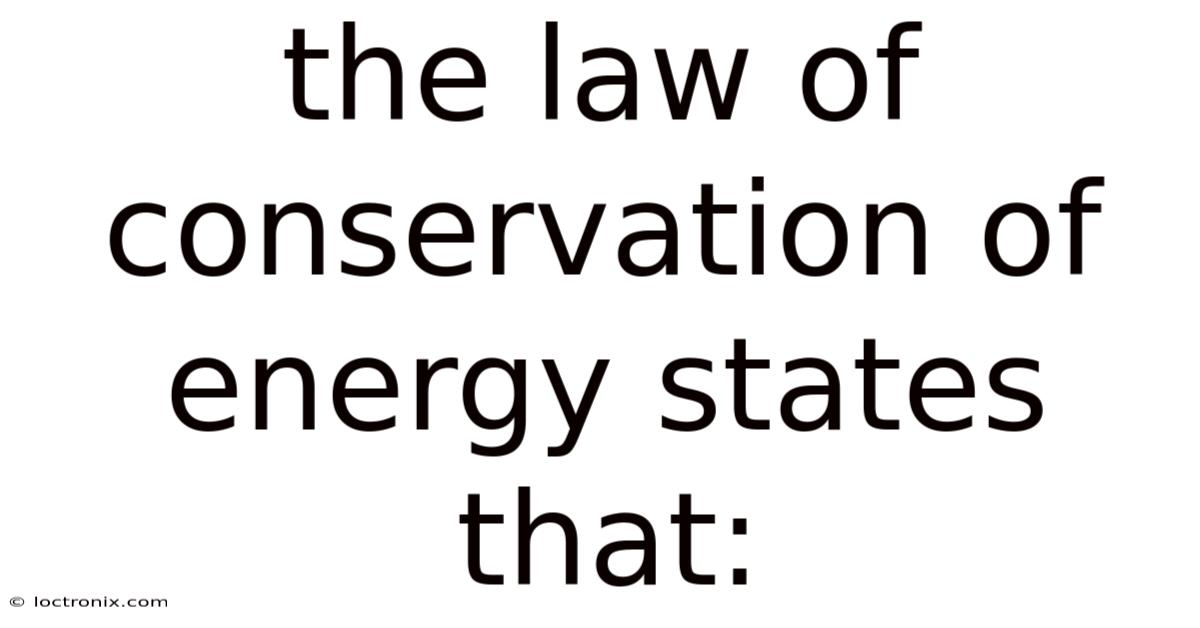 The Law Of Conservation Of Energy States That: