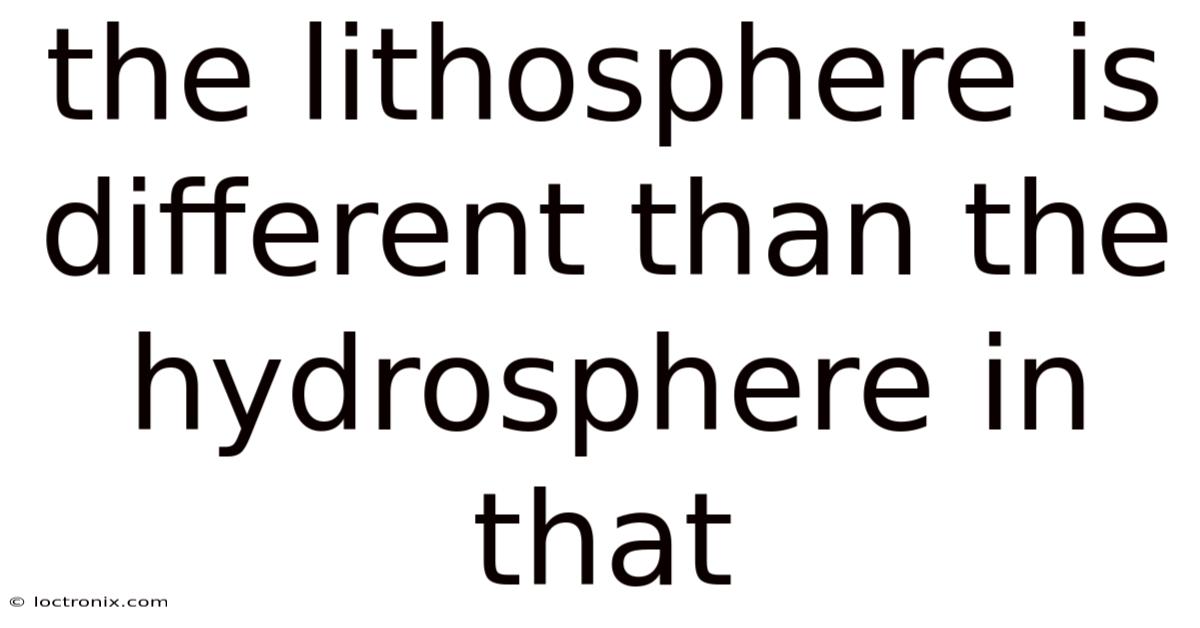 A: They are distinct but interdependent. The lithosphere provides the physical foundation, while the hydrosphere interacts with it through weathering, erosion, and groundwater processes.