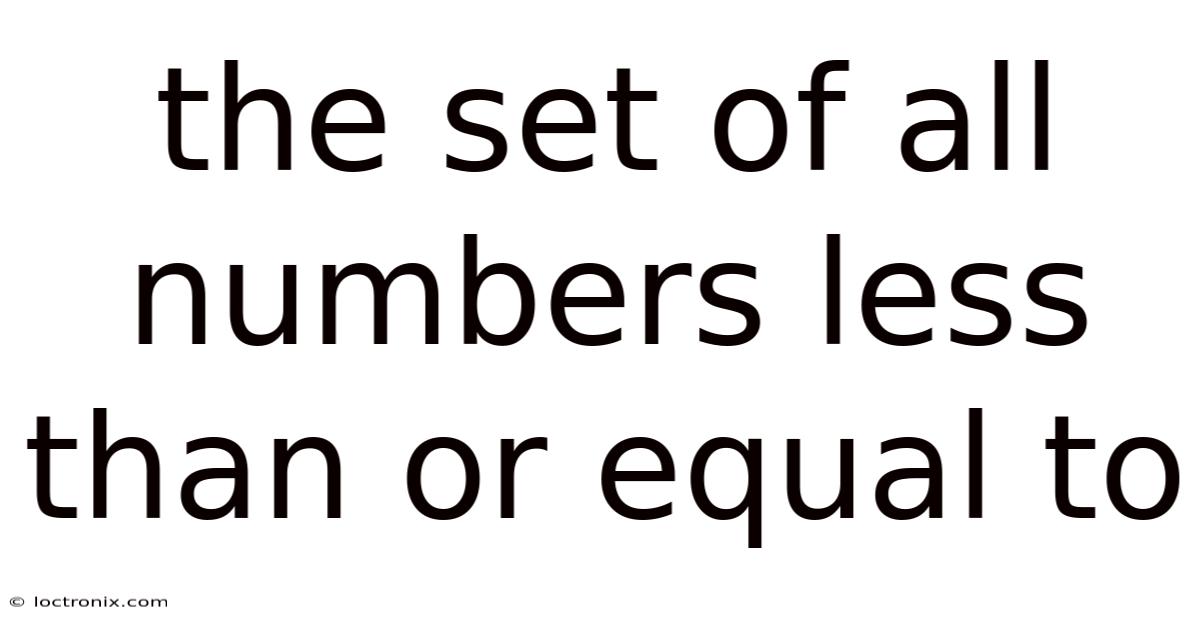 In the world of mathematics, understanding how to describe groups of numbers is a fundamental skill that unlocks more complex concepts in algebra, calculus, and data science. On the flip side, when we talk about the set of all numbers less than or equal to a specific value, we are venturing into the territory of inequalities and intervals. This concept is not just abstract theory; it is used daily in budgeting, engineering tolerances, and setting speed limits. This article will provide a thorough look to understanding these sets, how to represent them using interval notation, set-builder notation, and number lines, ensuring you have a complete grasp of this essential mathematical idea.