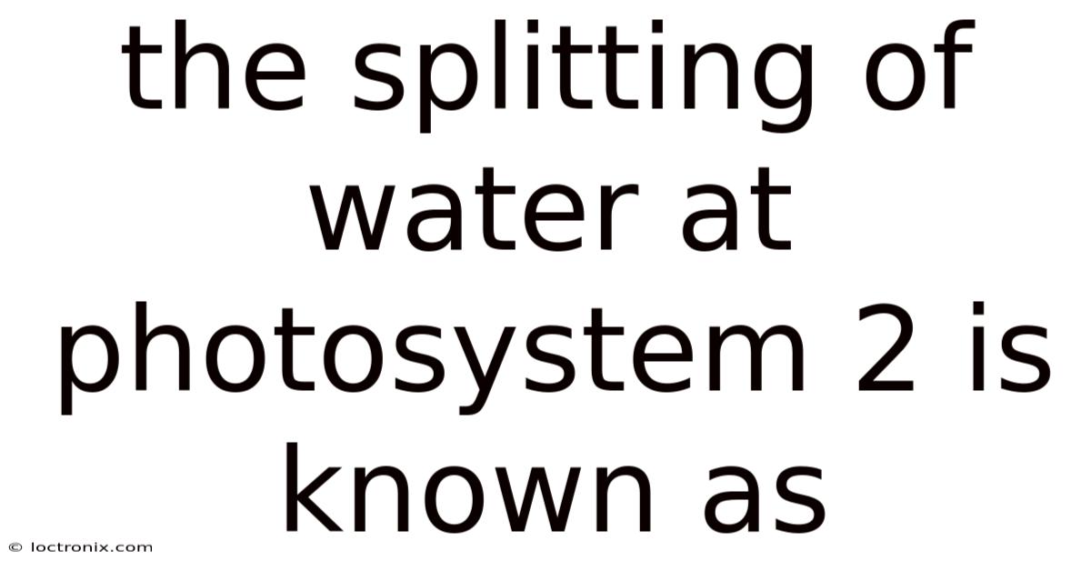 The Splitting of Water at Photosystem II is Known as Photolysis