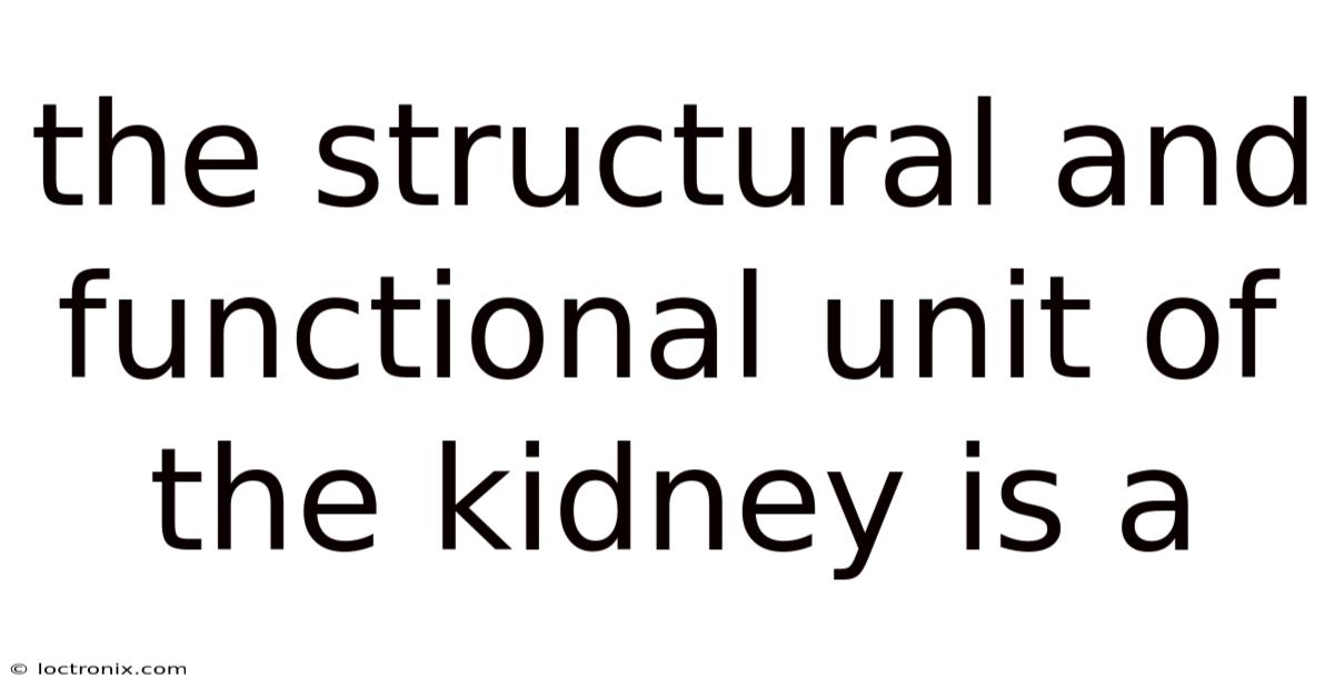 The Structural and Functional Unit of the Kidney is a Nephron: Your Body's Master Chemist