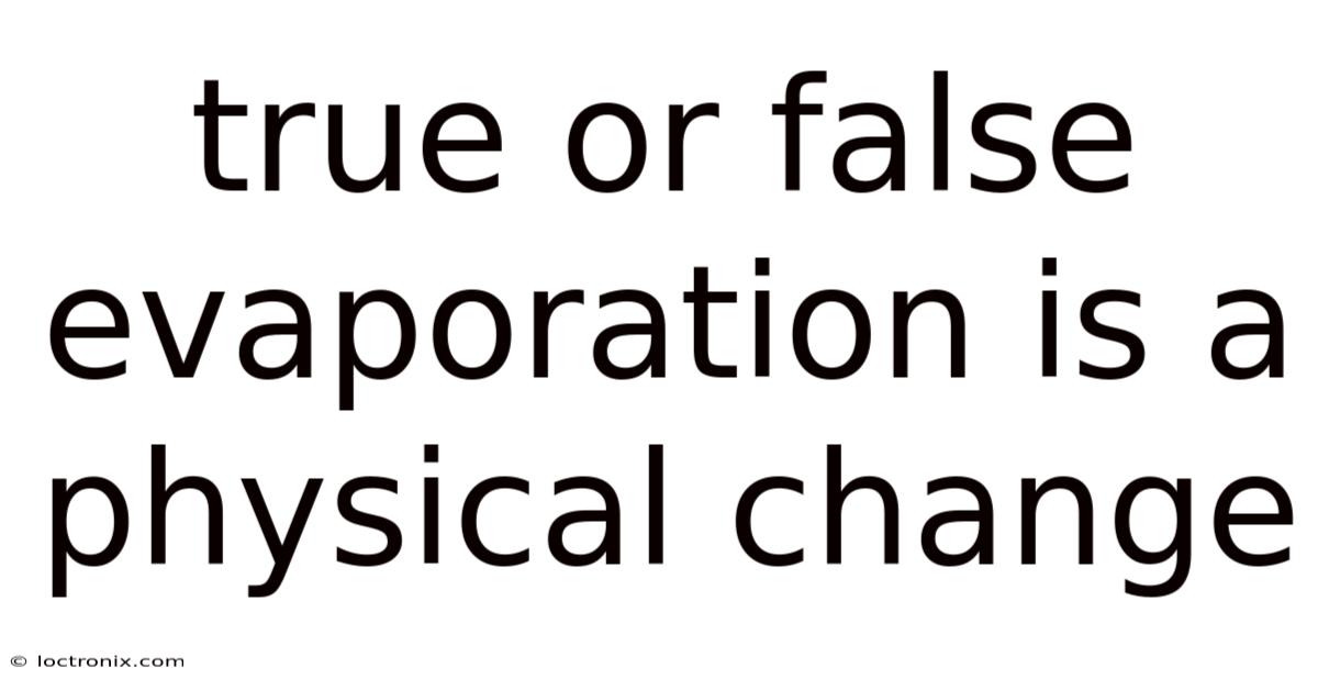 True Or False Evaporation Is A Physical Change