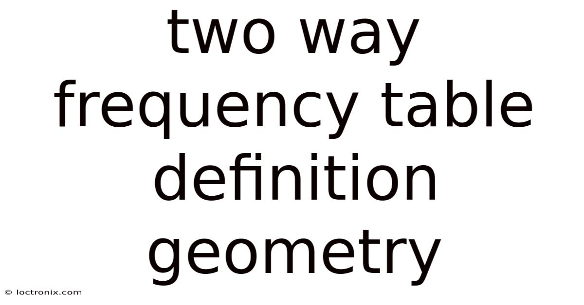 A two-way frequency table is a statistical tool used to organize and analyze data that involves two categorical variables. This article explores the definition of a two-way frequency table, its components, and how it can be applied in geometric contexts. Think about it: while its primary application lies in statistics, its principles can also intersect with geometry, particularly when analyzing spatial or geometric data that involves categorical classifications. By understanding this concept, readers can grasp how statistical methods like two-way frequency tables can complement geometric analysis, especially in fields such as spatial data science, computer graphics, or educational geometry.
