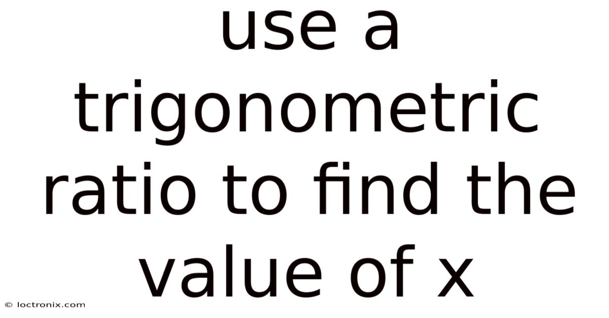 In conclusion, the ability to use trigonometric ratios to find the value of x is a fundamental skill in trigonometry with far-reaching applications. By understanding the geometric foundations of these ratios and following a systematic problem-solving approach, you can confidently navigate a wide array of scenarios involving right triangles. Whether you're designing a structure, navigating a course, or analyzing physical forces, the principles remain the same: relate angles to sides, select the appropriate ratio, and solve for the unknown. As you gain familiarity with common angle values and strengthen your problem-solving skills, you'll find that trigonometry becomes an invaluable tool in your mathematical toolkit, enabling you to tackle increasingly complex challenges with precision and efficiency.