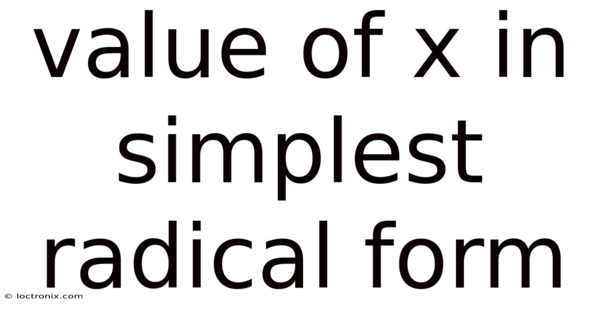 The concept of x transcends its role as a mere numerical placeholder, emerging as a cornerstone in mathematics that bridges abstract theory with practical application. In real terms, in this context, understanding x in its simplest radical form becomes not just an academic exercise but a gateway to deeper insights into mathematical elegance and precision. So at its core, x symbolizes a variable representing an unknown quantity, yet its significance extends far beyond algebra classes or calculus curricula. Now, whether solving equations, modeling real-world phenomena, or exploring geometric principles, x serves as a universal bridge connecting disparate domains. Its presence in fields ranging from physics to engineering underscores its indispensability, making it a subject of fascination and utility. This article digs into the multifaceted role of x, exploring its properties, methodologies for simplification, and the profound implications of achieving its simplest radical representation.