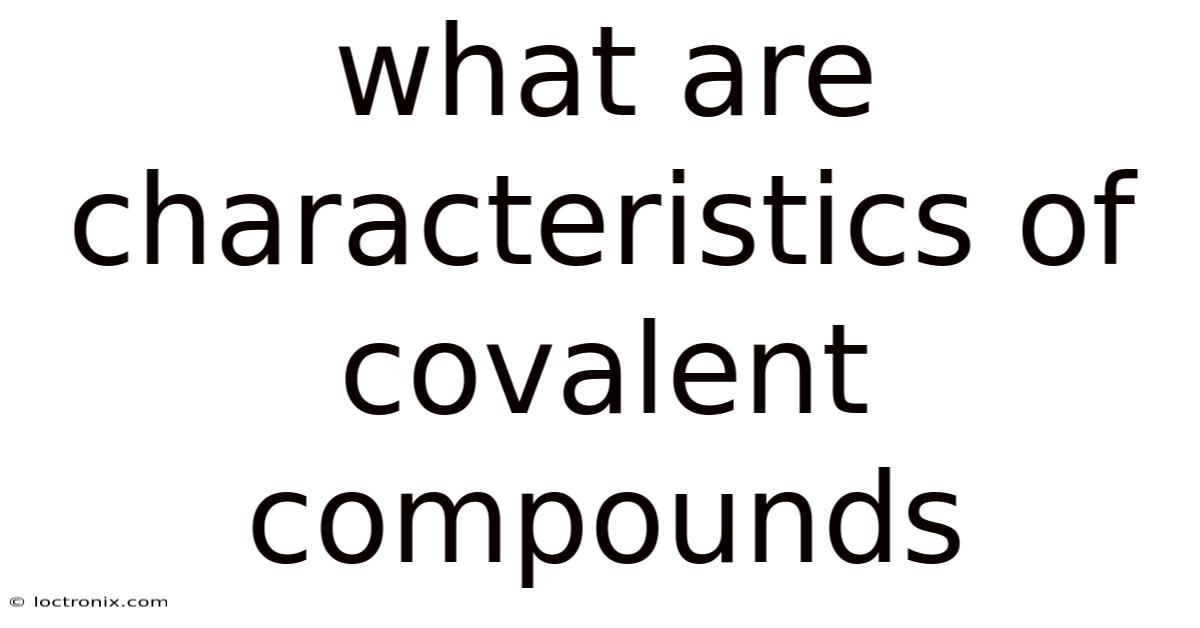 Understanding the characteristics of covalent compounds is essential for anyone exploring chemistry, whether you are a student preparing for exams, an educator designing lesson plans, or simply curious about the molecular world that shapes everyday materials. Unlike ionic substances that form rigid crystal lattices through electron transfer, covalent compounds are built through the sharing of valence electrons between nonmetal atoms. This fundamental difference in bonding gives rise to a distinct set of physical and chemical behaviors that dictate how these substances interact with heat, electricity, solvents, and biological systems. That said, from the water that sustains life to the polymers used in modern technology, covalent molecules dominate both natural and synthetic environments. This guide breaks down their defining traits, explains the atomic principles behind them, and demonstrates why mastering these concepts is crucial for scientific literacy and real-world problem solving And that's really what it comes down to. And it works..