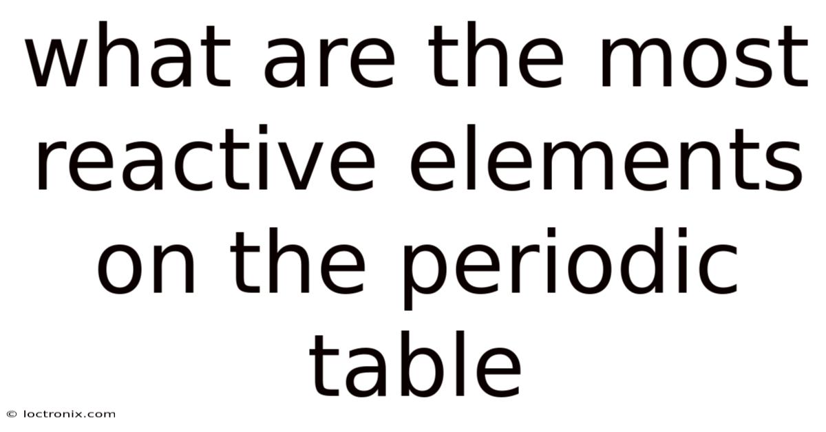 The most reactive elements on the periodic table are found at the extreme ends of the reactivity spectrum, where atoms eagerly seek to gain, lose, or share electrons to achieve a stable electron configuration. Reactivity is not a fixed property; it varies across periods and groups, but certain families—particularly the alkali metals and the halogens—stand out for their extraordinary willingness to participate in chemical reactions. Understanding which elements occupy this reactive niche, why they behave that way, and how their behavior can be predicted or controlled is essential for students, educators, and anyone curious about the building blocks of matter That alone is useful..