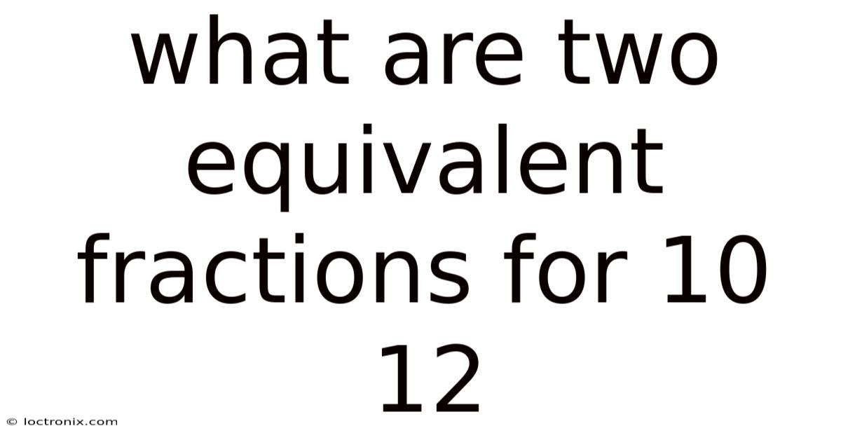 To grasp what are two equivalent fractions for 10/12, it’s important to first understand what makes fractions equivalent. Two fractions are equivalent if they simplify to the same value when reduced to their lowest terms. Take this: 1/2 and 2/4 are equivalent because both simplify to 0.That said, 5. That said, the key to finding equivalent fractions lies in multiplying or dividing both the numerator and the denominator by the same non-zero number. This operation maintains the fraction’s value while altering its appearance It's one of those things that adds up..