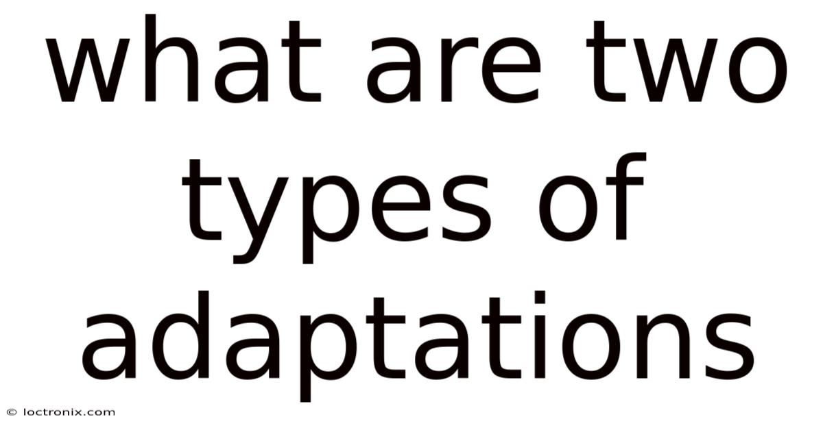 In the vast tapestry of life, organisms have developed remarkable strategies to thrive in their environments. These strategies, known as adaptations, are essential for survival and reproduction. Among the myriad of adaptations, two primary types stand out: structural and behavioral. On the flip side, understanding these adaptations not only highlights the ingenuity of nature but also provides insight into how species have evolved to occupy diverse ecological niches. Because of that, from the layered patterns of a chameleon’s skin to the migratory journeys of birds, adaptations reveal the dynamic interplay between organisms and their surroundings. This article explores the two main types of adaptations—structural and behavioral—and examines how they enable life to flourish in even the most challenging conditions Practical, not theoretical..