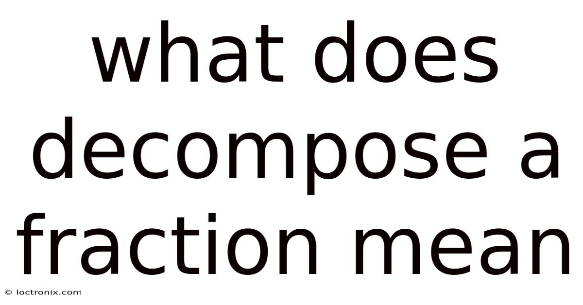 Decomposing a fraction is the process of breaking a single rational number into a sum of simpler fractions, often with the goal of making calculations easier, revealing hidden patterns, or preparing the expression for further algebraic manipulation. That said, in higher‑level mathematics, decomposition can refer to partial‑fraction expansion, mixed‑number conversion, or even the breakdown of a rational function into simpler components for integration. In elementary arithmetic, this technique appears when we split a fraction into a whole number plus a proper fraction, or when we express it as a sum of unit fractions (Egyptian fractions). Understanding what “decompose a fraction” means therefore opens doors to a wide range of problem‑solving strategies across grade school, high school, and college curricula.
