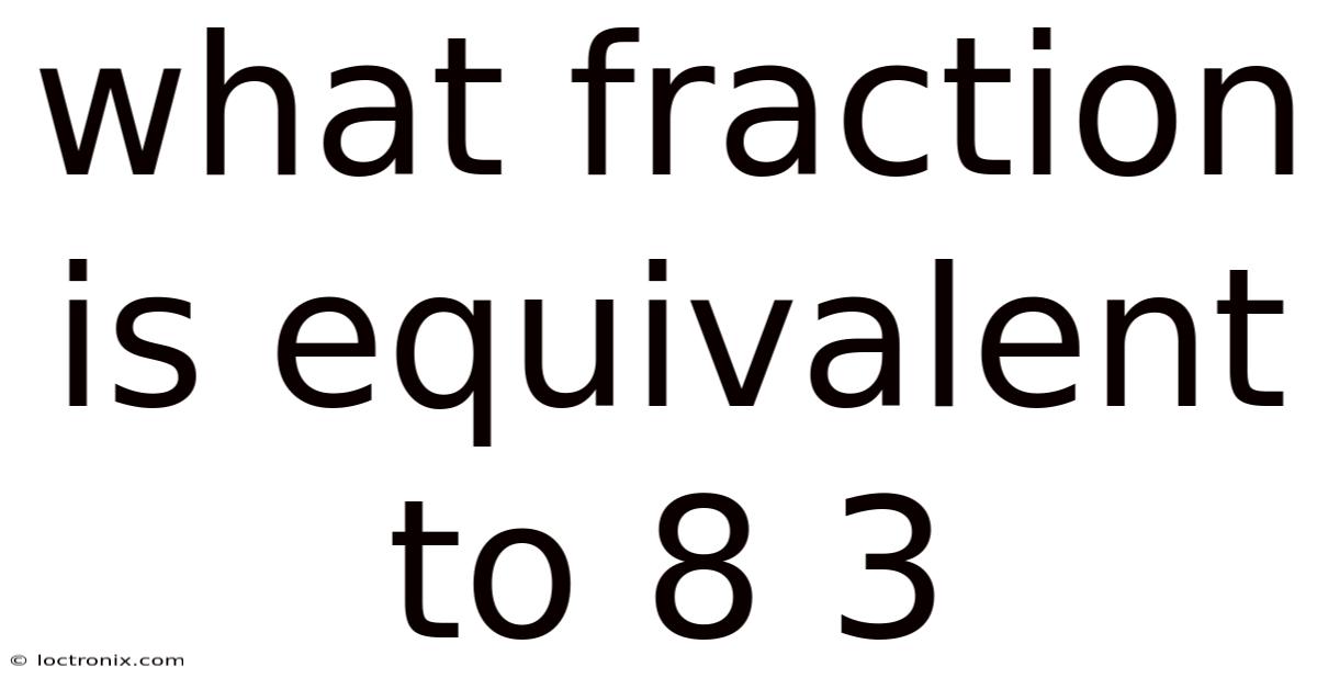 What fraction is equivalent to8/3? This question might seem simple at first, but understanding equivalent fractions is a foundational concept in mathematics that applies to everything from basic arithmetic to advanced algebra. Here's the thing — equivalent fractions are different fractions that represent the same value, even though they may look different. Take this: 1/2 is equivalent to 2/4, 3/6, and so on. In this article, we’ll explore what fraction is equivalent to 8/3, how to find such fractions, and why this concept is important in math.