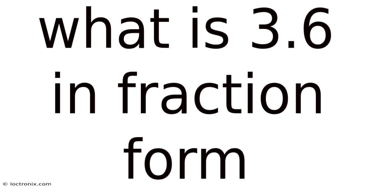 When you encounter the decimal 3.6 and need to express it as a fraction, the process is straightforward once you understand the relationship between decimal places and denominator values. Also, understanding what is 3. Which means 6 in fraction form helps bridge the gap between everyday numbers and the more precise world of ratios, making calculations in algebra, geometry, and real‑life applications smoother. Below is a step‑by‑step guide, followed by a deeper look at why the conversion works, common pitfalls to avoid, and practical examples that show how the fraction form of 3.6 appears in various contexts.