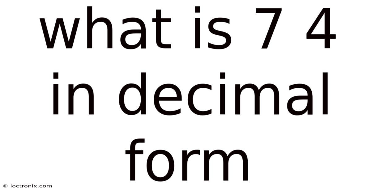 Understanding the value of 7 4 in decimal form is a simple yet essential concept that plays a significant role in everyday calculations. Whether you're working with numbers in school, business, or personal finance, grasping how to convert whole numbers into decimal form is crucial. This article will explore what 7 4 means, why it matters, and how to handle similar conversions effectively Worth knowing..