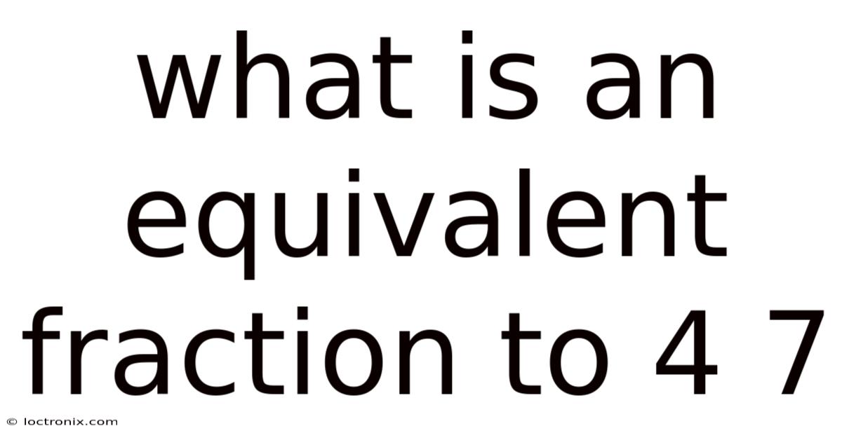 Can you give an example of an equivalent fraction to 4/7? An example of an equivalent fraction to 4/7 is 8/14. This is found by multiplying both the numerator and the denominator of 4/7 by 2.