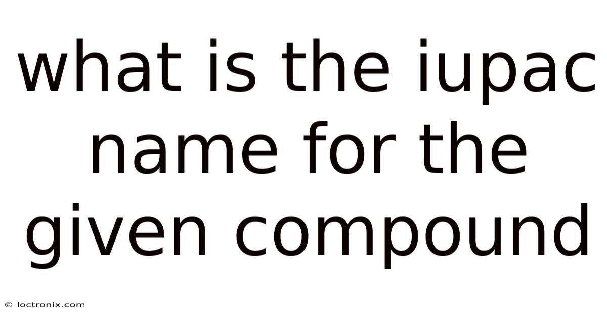 The IUPAC name for a given compound is a systematic way of naming chemical substances based on a set of standardized rules established by the International Union of Pure and Applied Chemistry (IUPAC). In practice, this nomenclature ensures that every compound has a unique and unambiguous name, which is critical for clear communication in scientific research, education, and industry. Consider this: for instance, while a compound might be called "methanol" in everyday language, its IUPAC name is "methanol," which is derived from its molecular formula (CH₃OH) and functional group (alcohol). The IUPAC name reflects the compound’s structure, functional groups, and atomic arrangement, eliminating the confusion that often arises from common or regional names. Understanding how to determine the IUPAC name for a given compound is essential for anyone working with chemistry, as it forms the foundation of chemical literacy and precision.