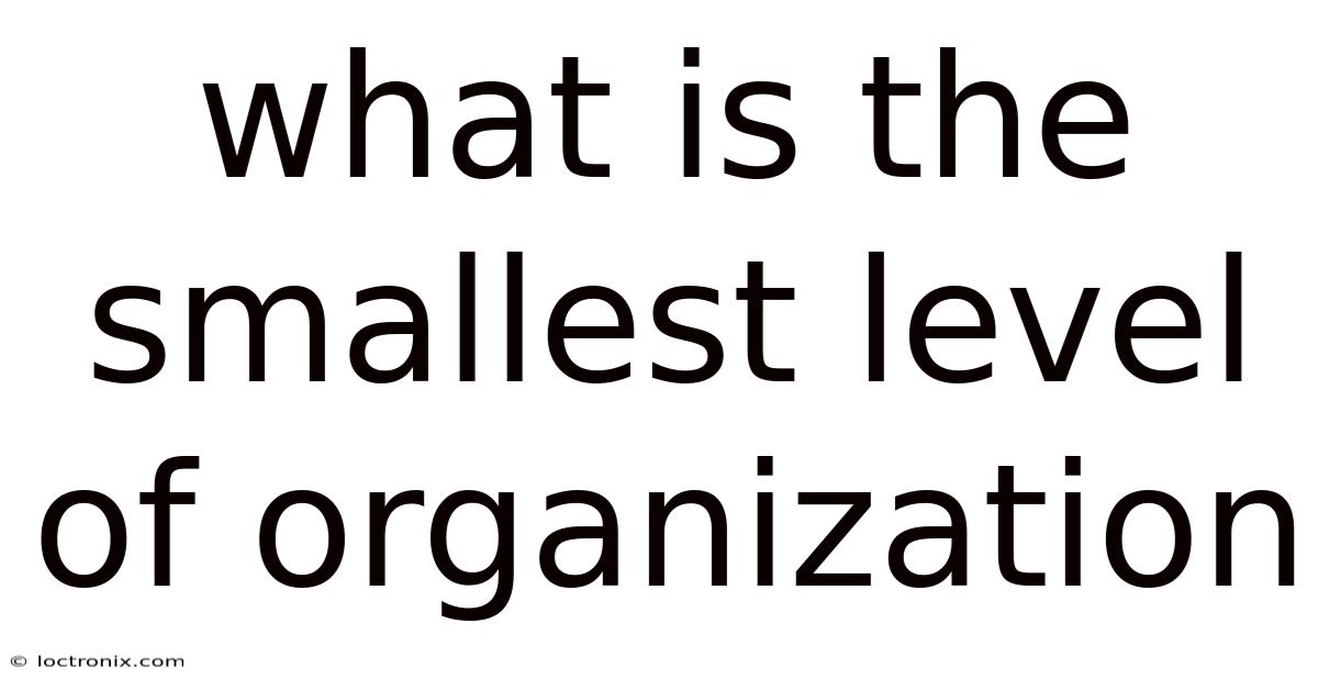 The concept of organizational structure serves as the foundational framework that shapes how teams operate, resources are allocated, and goals are pursued within an entity. While complexities often arise when attempting to overcomplicate systems, understanding the smallest level of organization allows leaders to identify inefficiencies and refine processes effectively. Such awareness enables stakeholders to prioritize what truly matters, eliminating distractions and focusing energy where it yields the greatest impact. So at its core, this structure acts as the blueprint guiding every interaction, decision-making process, and interpersonal relationship within an organization. This foundational layer must balance simplicity with adaptability, ensuring that even the most streamlined systems remain flexible enough to accommodate evolving challenges. Whether operating in a small startup or a sprawling corporation, the principles underlying organizational design remain consistent, offering a universal lens through which to view operational dynamics. The goal is not to impose rigidity but to establish a structure that supports growth without compromising coherence, fostering an environment where clarity and purpose coexist harmoniously Easy to understand, harder to ignore..
