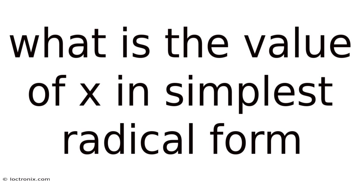 When solving mathematical equations, especially those involving square roots or other radicals, simplifying expressions to their simplest radical form is a critical skill. This process ensures that the value of x is expressed in its most reduced and understandable format. Simplest radical form means that the radicand (the number or expression under the radical sign) has no perfect square factors other than 1, and any coefficients outside the radical are as simplified as possible. Take this: instead of leaving √50 as is, it is simplified to 5√2. Understanding how to find the value of x in this form is essential for algebra, geometry, and higher-level mathematics It's one of those things that adds up..