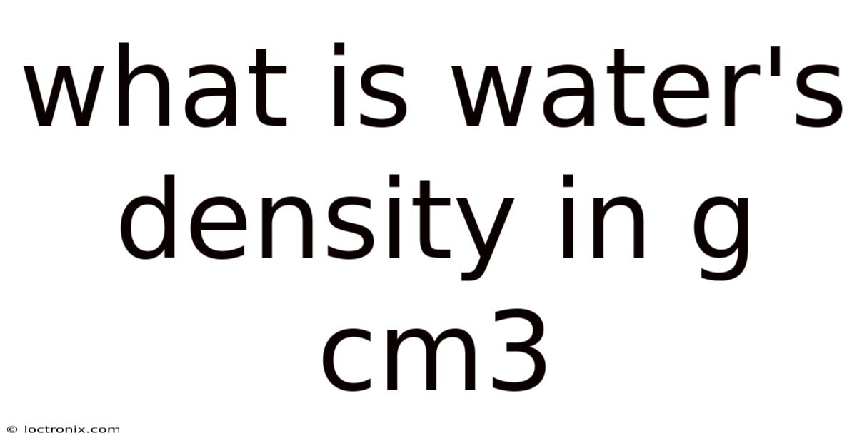 Water’s density is afundamental physical property that answers the question what is water’s density in g cm³ and serves as a reference point for countless scientific, industrial, and everyday applications. In real terms, 00 g cm⁻³**, meaning that one cubic centimeter of water weighs exactly one gram. At standard temperature and pressure (4 °C and 1 atm), pure water exhibits a density of **1.This seemingly simple number underlies everything from calibrating laboratory equipment to designing hydraulic systems, and understanding how it is determined can deepen your appreciation of the substance that sustains life on Earth.