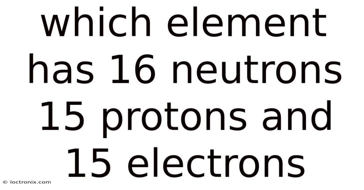 Sulfur: The Element with 16 Neutrons, 15 Protons, and 15 Electrons
