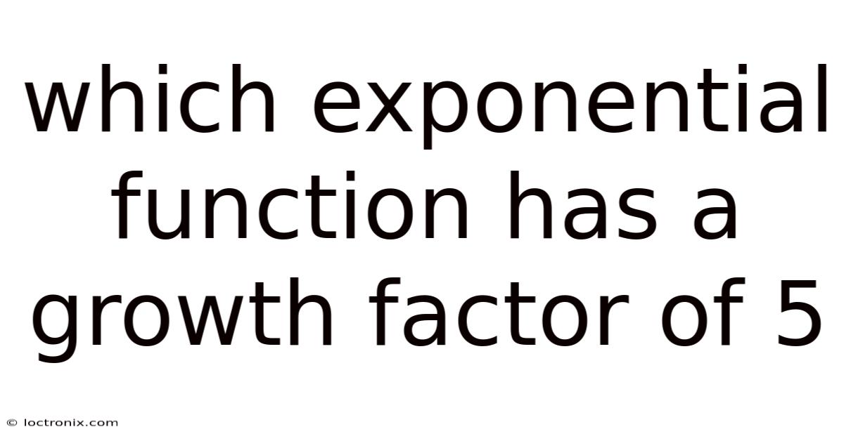 To pinpoint which exponential function possesses a growth factor of 5, examine the base of the exponent in the given equation. If the base is exactly 5, the function meets the criterion. The most straightforward example is: