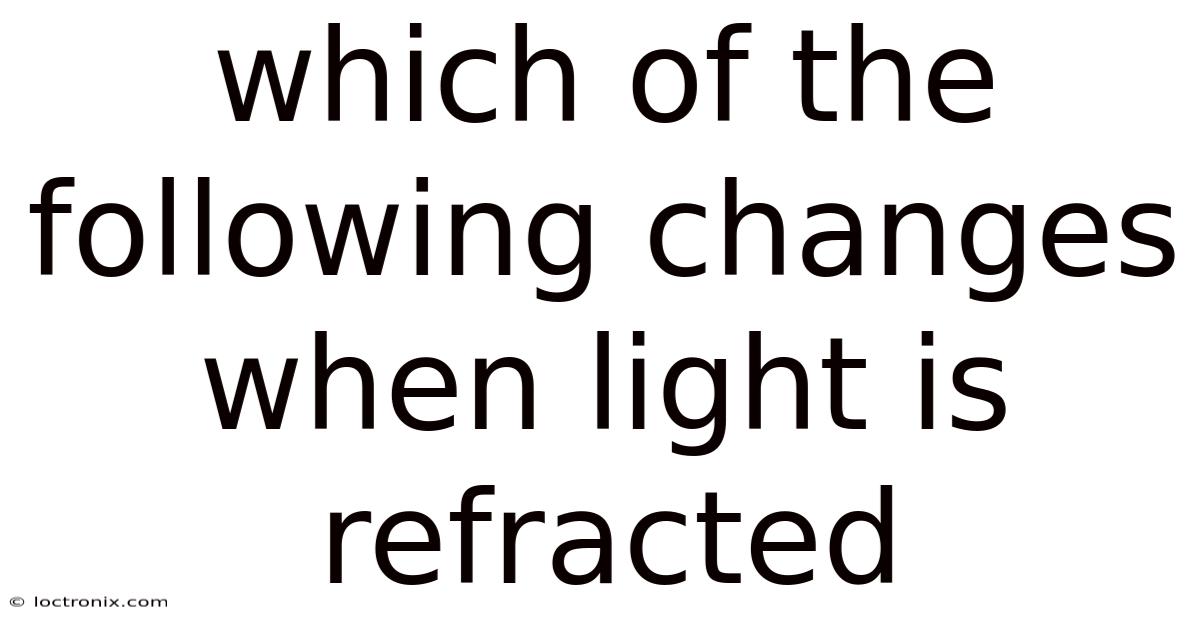 Light, that fundamental phenomenon enabling visionand shaping our perception of the world, undergoes a fascinating transformation when it encounters a change in medium. Practically speaking, this transformation, known as refraction, is a cornerstone principle of optics. The question "which of the following changes when light is refracted?" digs into the core aspects of this process. Let's explore the answer by examining the key alterations that occur.