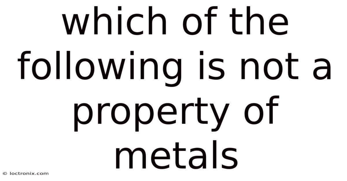 Which of the Following Is Not a Property of Metals: A Comprehensive Breakdown