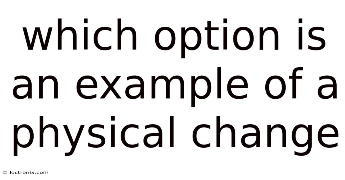 When studying matter and its transformations, students frequently encounter questions like which option is an example of a physical change on quizzes, standardized tests, and classroom assignments. Plus, a physical change is any process that alters the form, state, or appearance of a substance without modifying its chemical composition, meaning the molecules remain identical before and after the transformation. This guide breaks down how to recognize physical changes, explains the underlying science, and provides a clear framework for selecting the correct answer every time. Whether you are reviewing for an exam or simply building foundational chemistry knowledge, understanding these concepts will strengthen your scientific reasoning and boost your confidence.