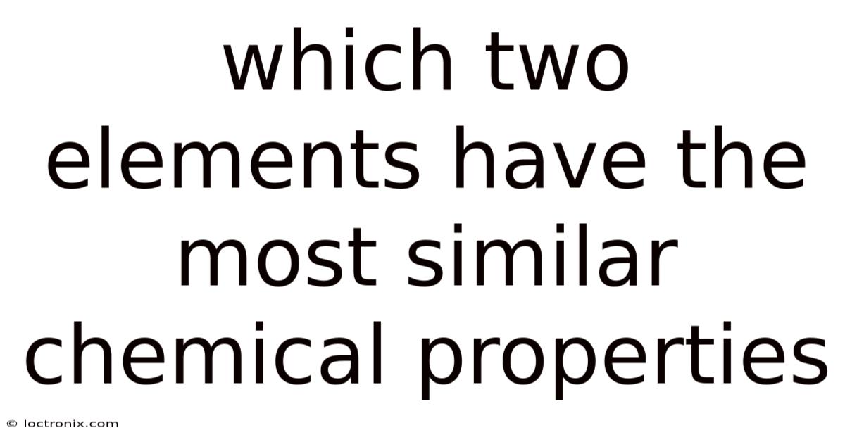 To identify which two elements have the most similar chemical properties, it's helpful to consider the structure of the periodic table. The elements are arranged in order of increasing atomic number, and those with similar properties fall into the same vertical columns. Consider this: for example, all elements in Group 1 (the alkali metals) are highly reactive, especially with water, and all have one valence electron. Similarly, the elements in Group 17 (the halogens) are all highly reactive nonmetals with seven valence electrons Turns out it matters..
