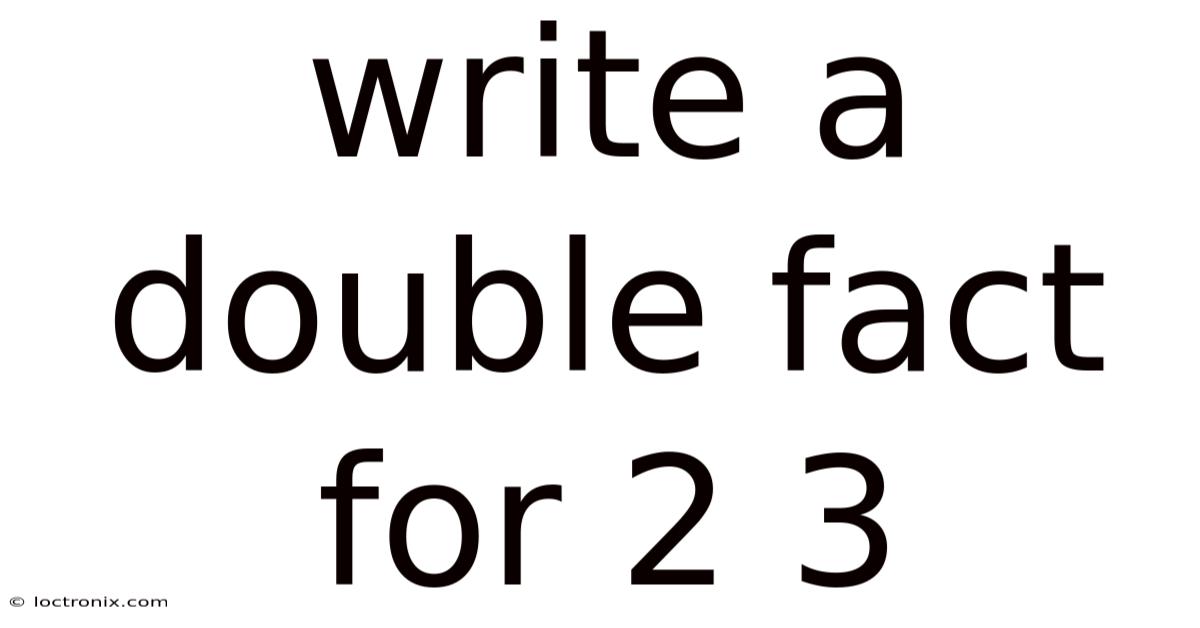 Double Fact for 2 3 serves as a fundamental building block in early mathematics, illustrating the core principle of multiplication as repeated addition. This specific calculation, involving the numbers two and three, provides an accessible entry point for understanding how quantities can be scaled efficiently. Mastering this concept is not merely about memorizing a result; it is about grasping the logical structure that underpins arithmetic operations. This article will explore the definition, step-by-step computation, practical applications, and the underlying scientific reasoning that makes this mathematical operation both reliable and essential Small thing, real impact..
