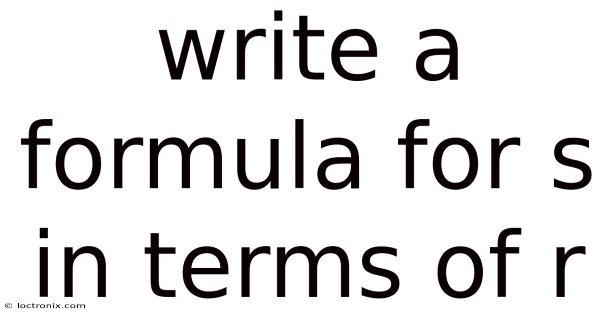 Understanding the relationship between variables in mathematical equations is a fundamental skill that opens doors to solving complex problems across various fields. One such relationship is the formula for s in terms of r, a concept that matters a lot in different areas of science, engineering, and everyday life. Also, in this article, we will explore what this formula means, how to derive it, and why it matters. Whether you're a student trying to grasp a mathematical idea or a professional looking to apply these principles, this guide will provide clarity and depth to your understanding That's the part that actually makes a difference..