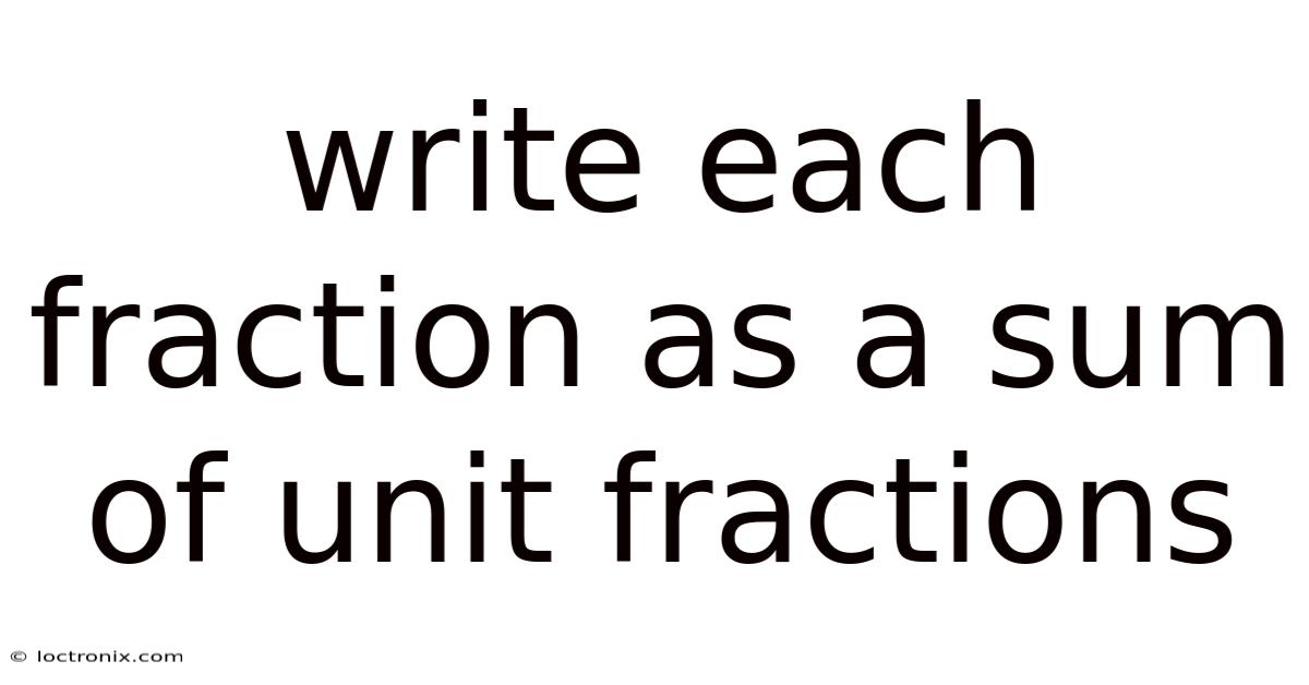 Understanding the concept of writing each fraction as a sum of unit fractions is a fascinating journey into the world of mathematics. Even so, this technique not only simplifies the representation of fractions but also offers a deeper insight into the structure of numbers. In this article, we will explore the significance of unit fractions and how they can be effectively used to express any fraction in a more elegant and structured way.